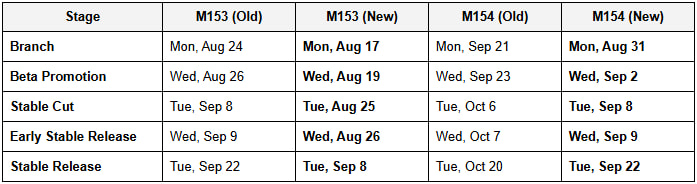 With the release of Chrome 153 on September 8, Google will start shipping two new stable versions of the browser every month, breaking the long-standing schedule developers followed since 2021.