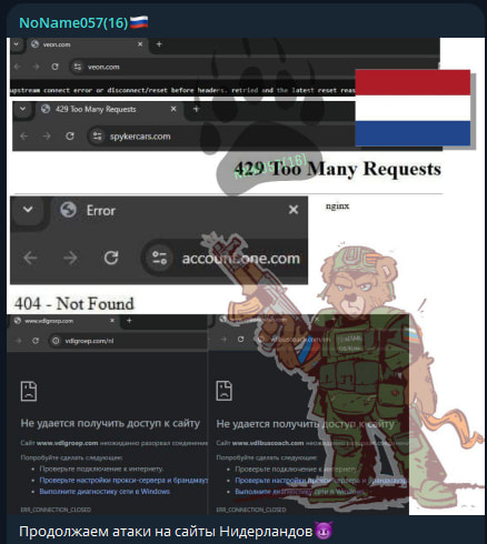 The NCSC noted that the attacks were claimed by the hacktivist group named NoName057(16) on the threat actor’s Telegram channel.